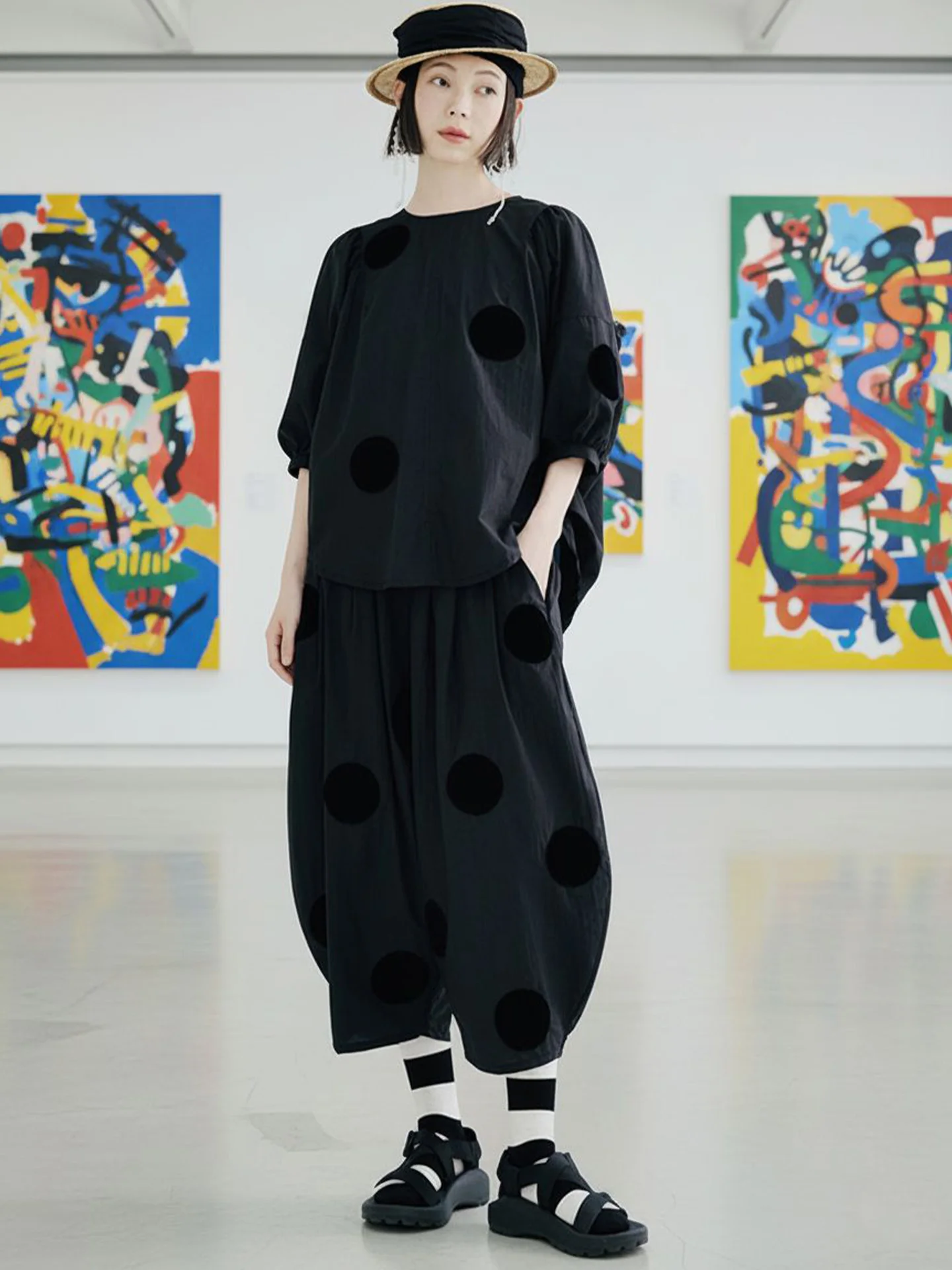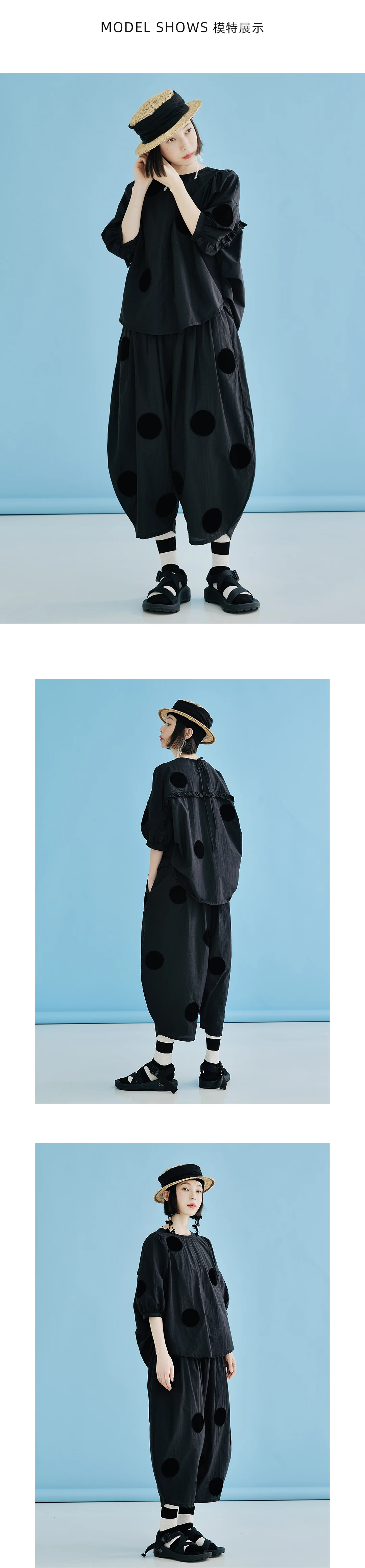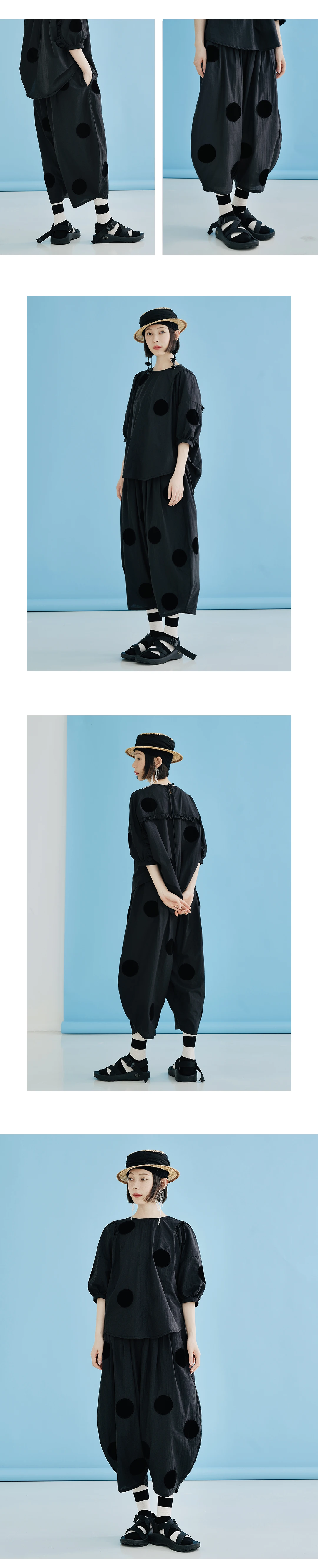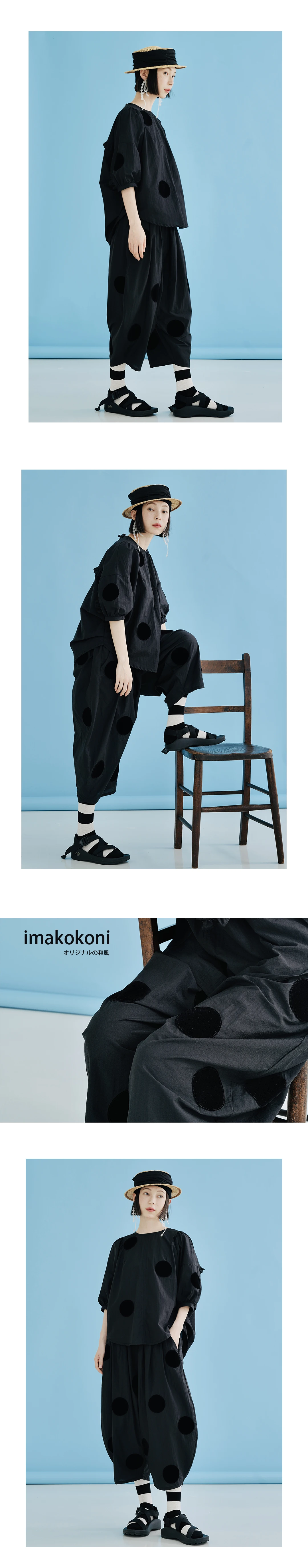 imakokoni Original New Black Loose Polka Dot Glacier Cotton Ankle-Length Wide-Leg Pants, Thin Style for Summer 223689