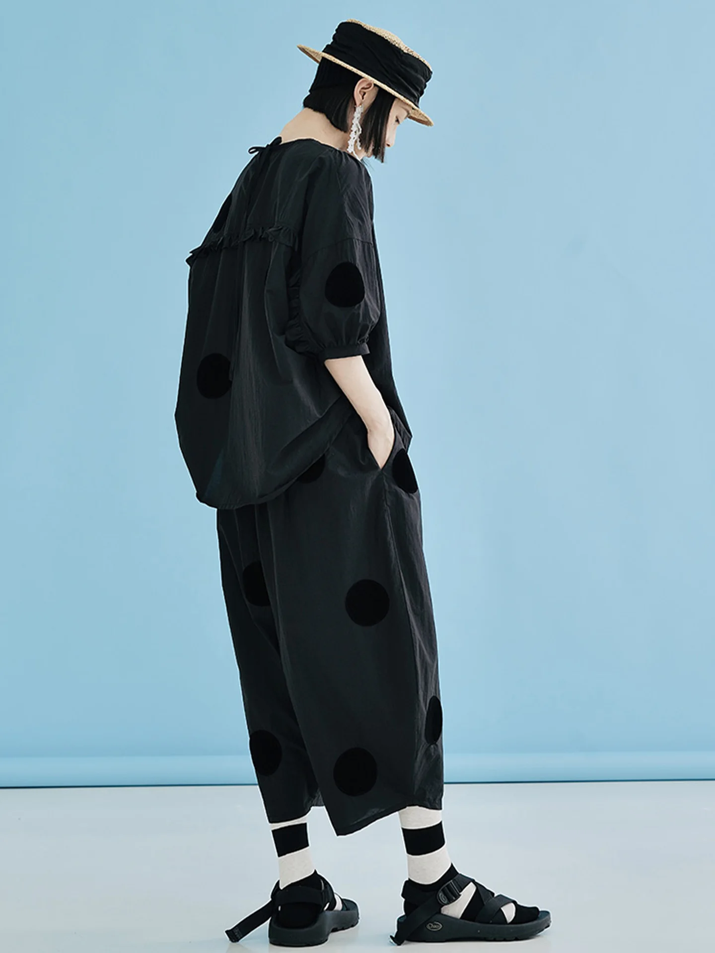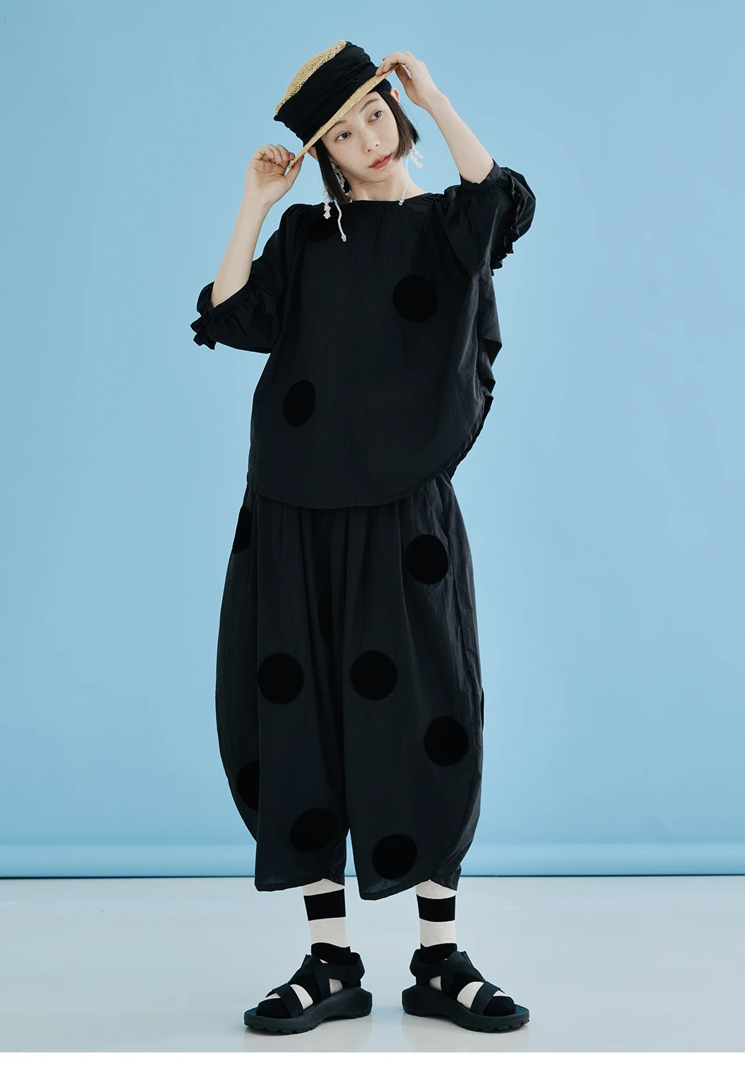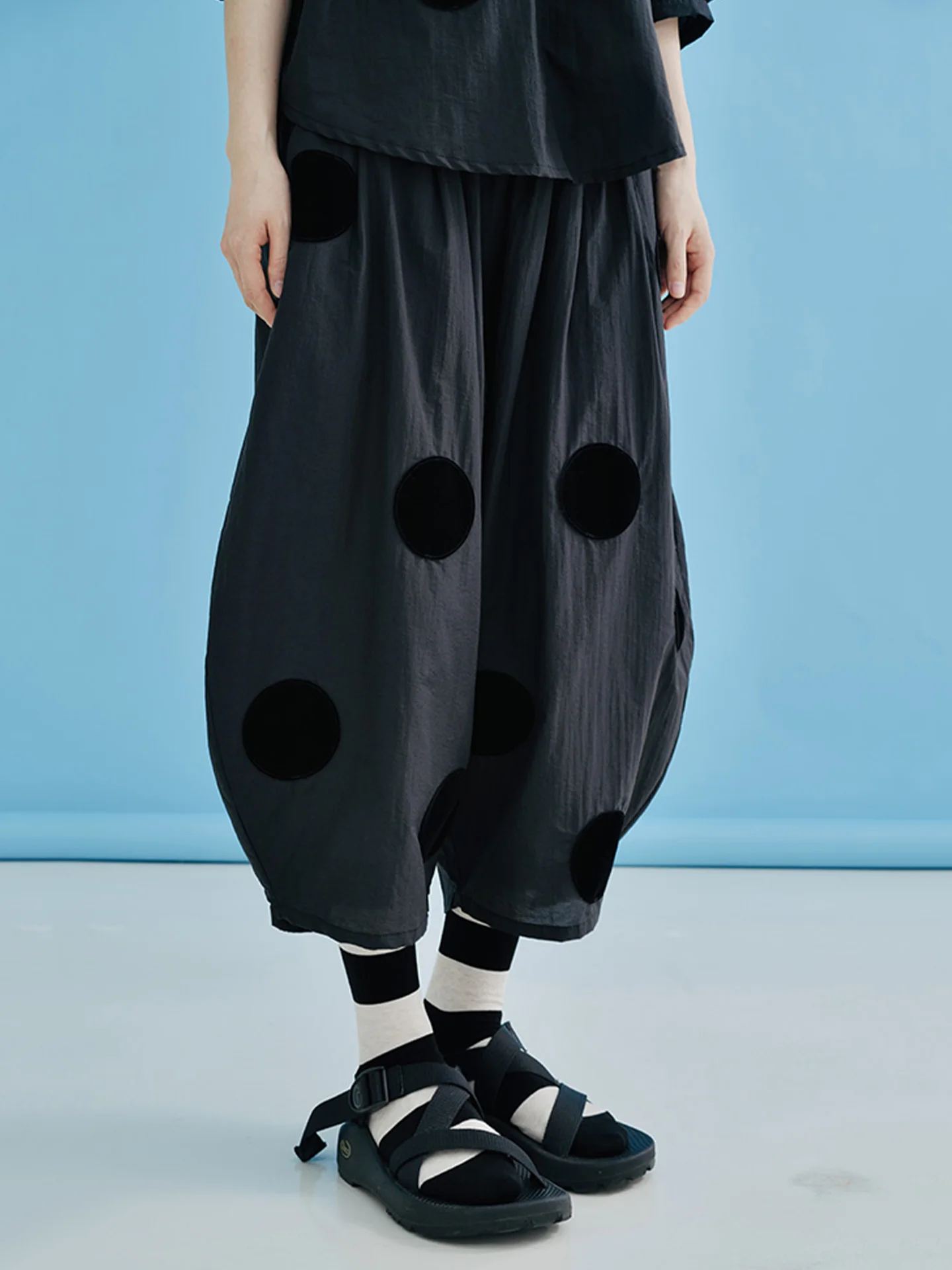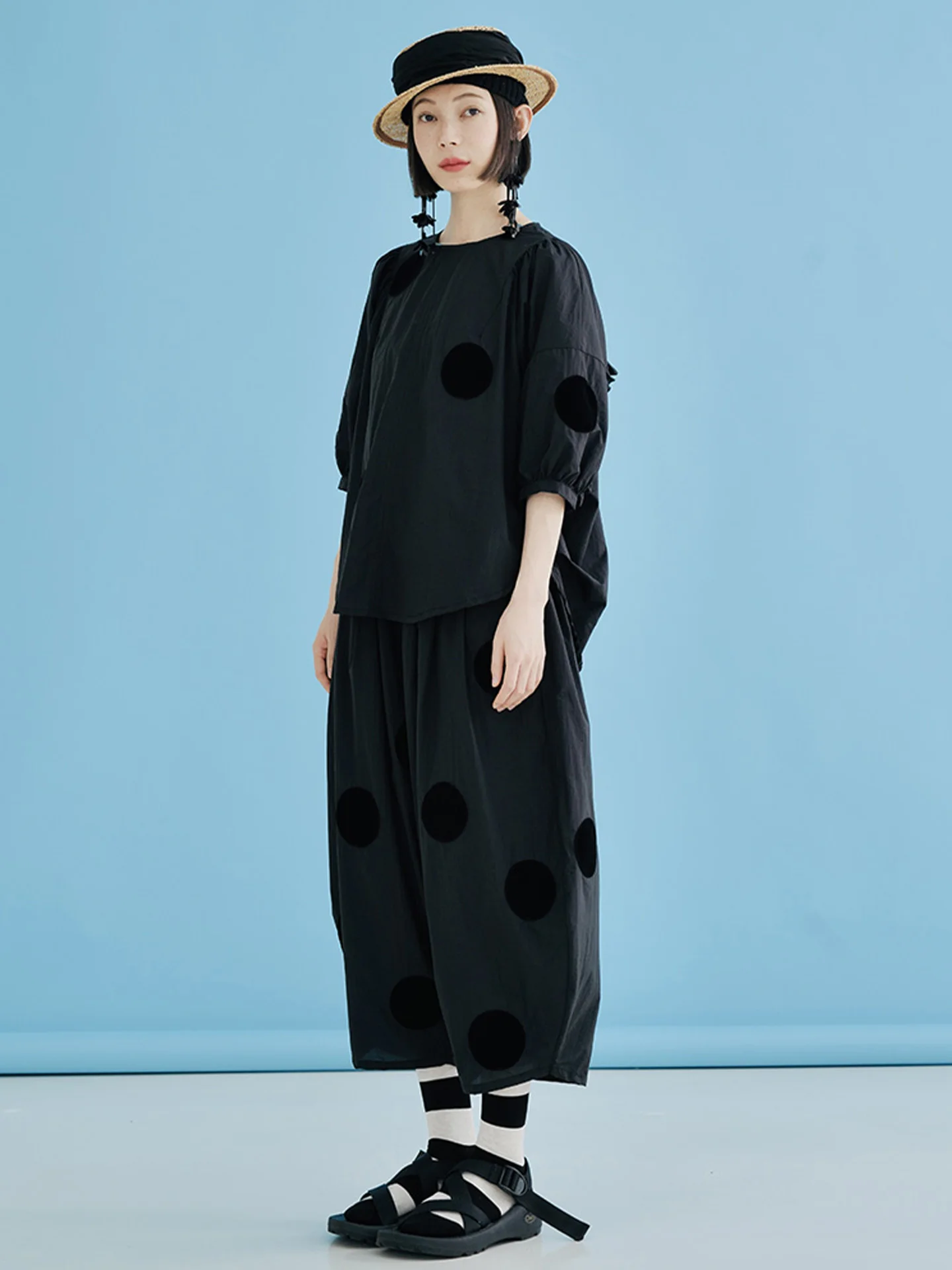 imakokoni Original New Black Loose Polka Dot Glacier Cotton Ankle-Length Wide-Leg Pants, Thin Style for Summer 223689