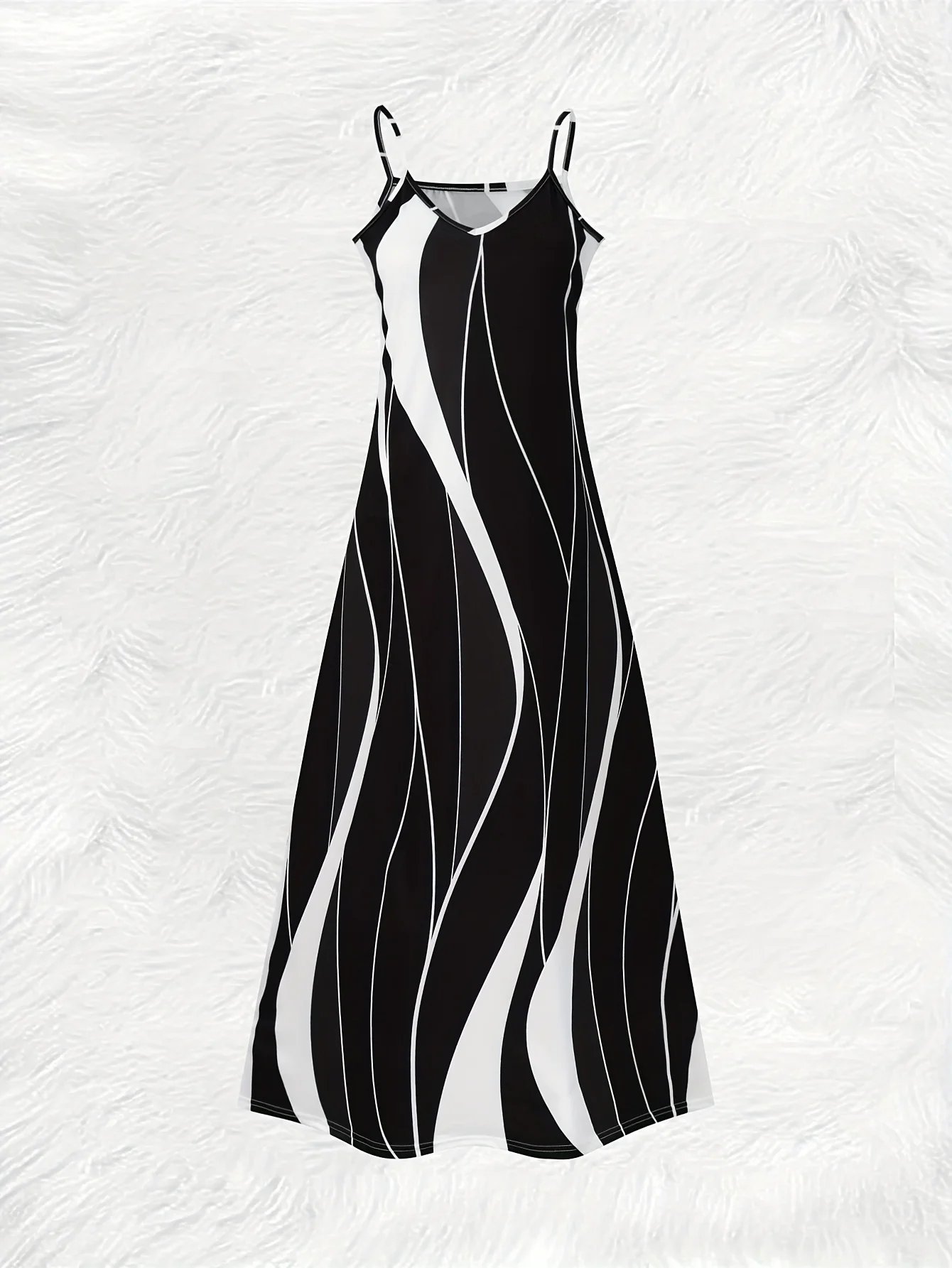 Spring Autumn Black White Abstract Stripes V Neck Long Sleeve Bodycon Dress Casual Office Work Wear Women Fashion Midi Dress