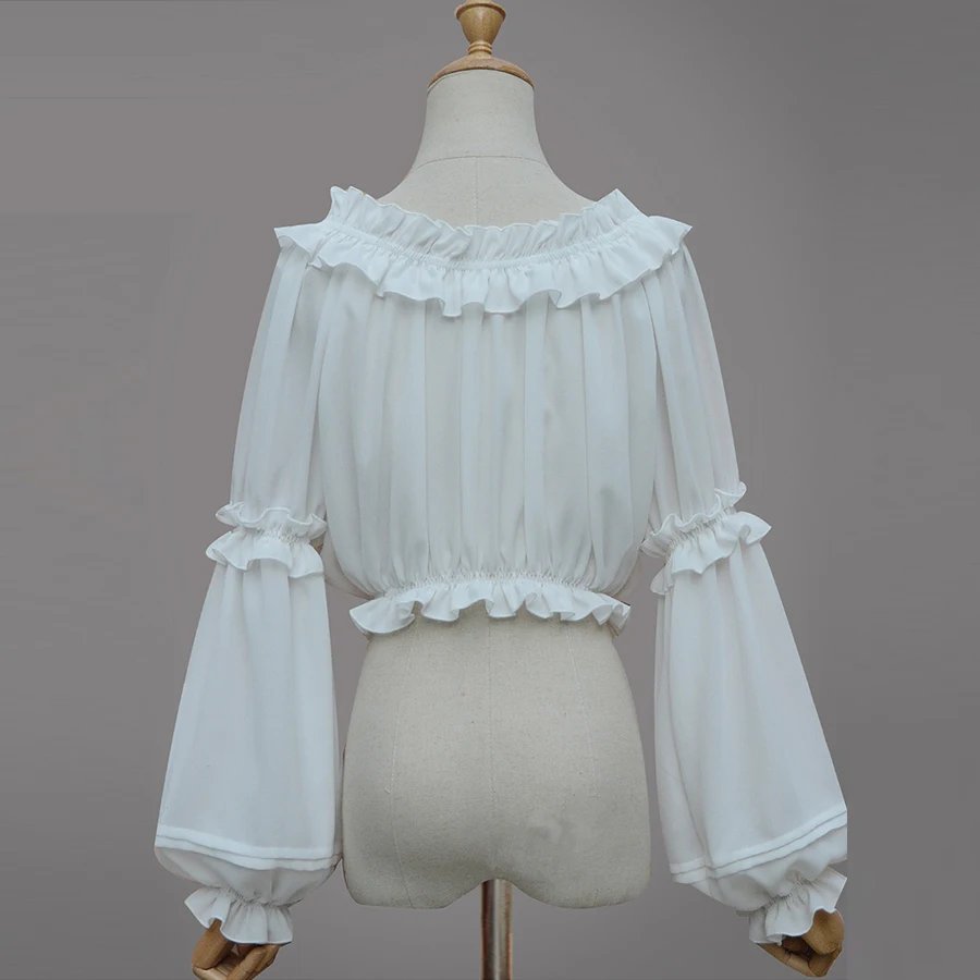 Spring Summer Women Chiffon Short Lolita Shirt Gothic Victorian Blouse Girls Casual Bottoming Shirt White Black Corset Tops