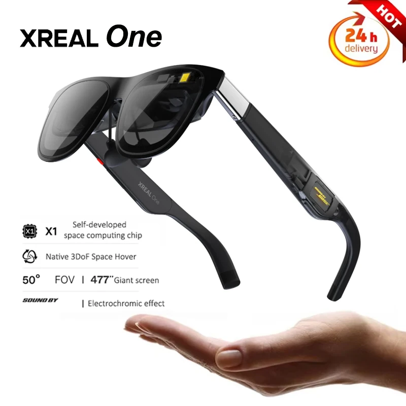Xreal One AR Glasses Up to 147″ Screen 120Hz Refresh Rate Global Version 50° Fov Connect USB-C Device for iPhone PS5 Xbox Switch